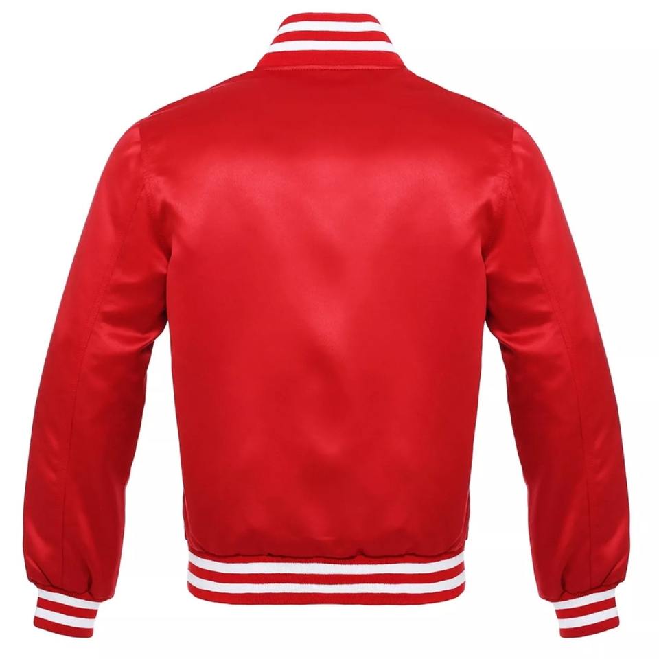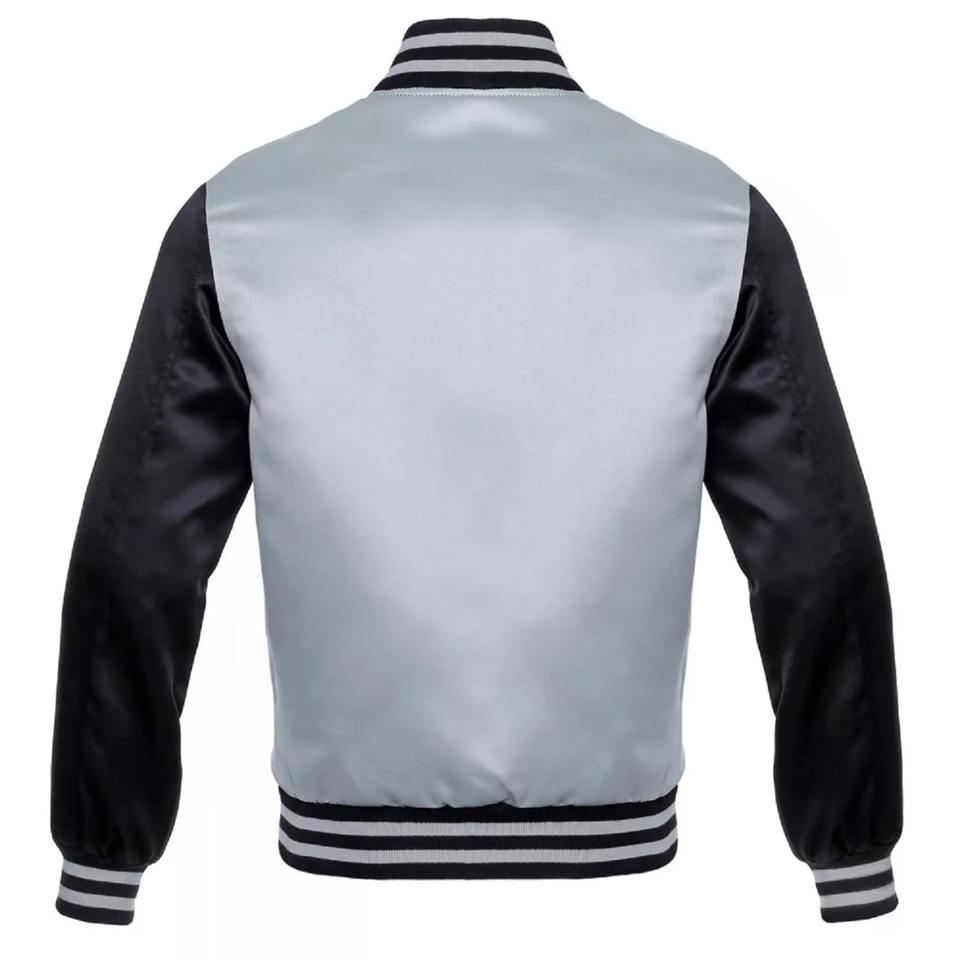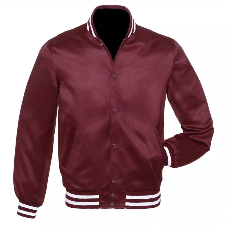 Chaqueta Universitaria de Satén de Béisbol con Cuello Camisero, Chaqueta Universitaria de Estilo Bomber con Ribete Real, Servicio OEM, Cierre con Botones de Cuerno