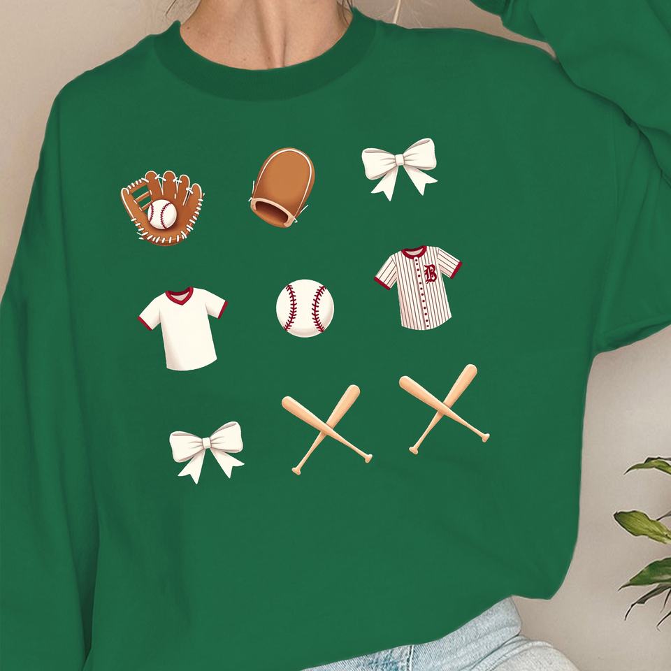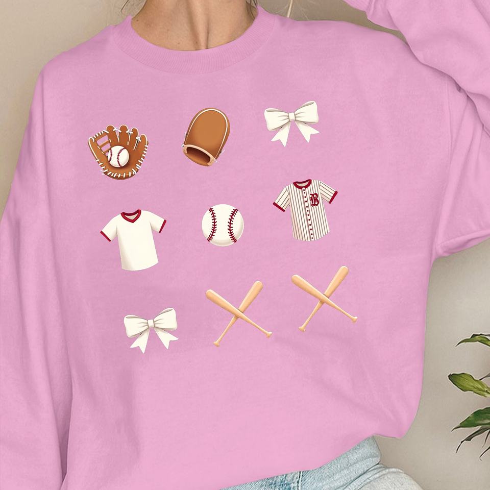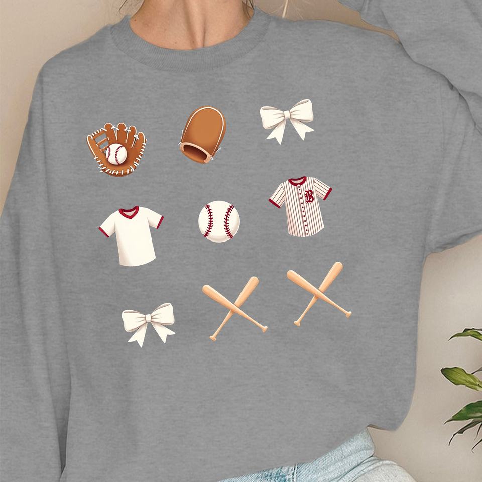 Sudaderas Casuales de Punto para Mujer con Estampado de Béisbol y Lazos