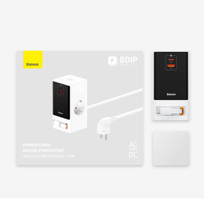 Baseus-Regleta de alimentación de escritorio digital, cargador rápido GaN de 65W, 2 enchufes de CA, control remoto por aplicación para IPhone16 15 14 Samsung Tablet Laptop