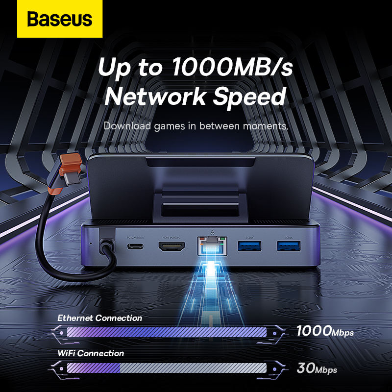 Baseus - Estación de Acoplamiento USB C para Steam Deck y Nintendo Switch, 6 en 1, Tipo C a HDMI 4K a 60 Hz, Ethernet Gigabit, Hub USB 3.0