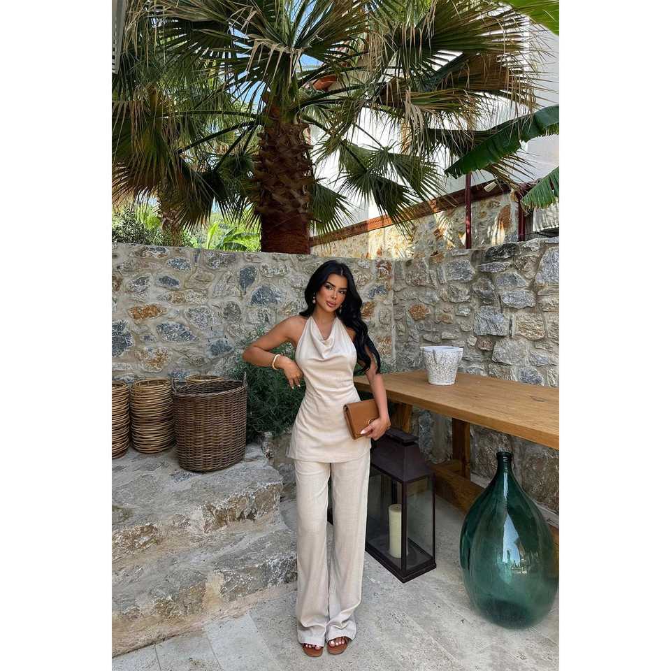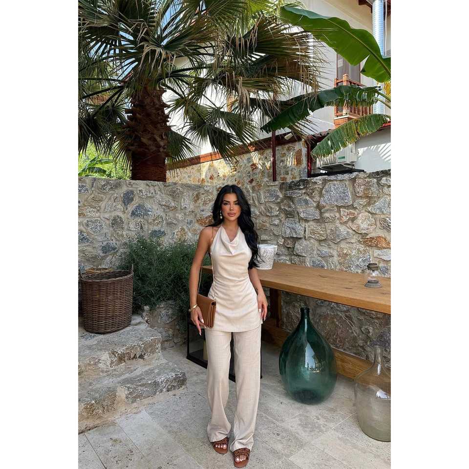 Conjunto Básico de Dos Piezas en Beige, Estilo Club, Informal, de Punto de Algodón, Holgado, Top y Pantalones Cortos Tejidos, Talla XS de Verano
