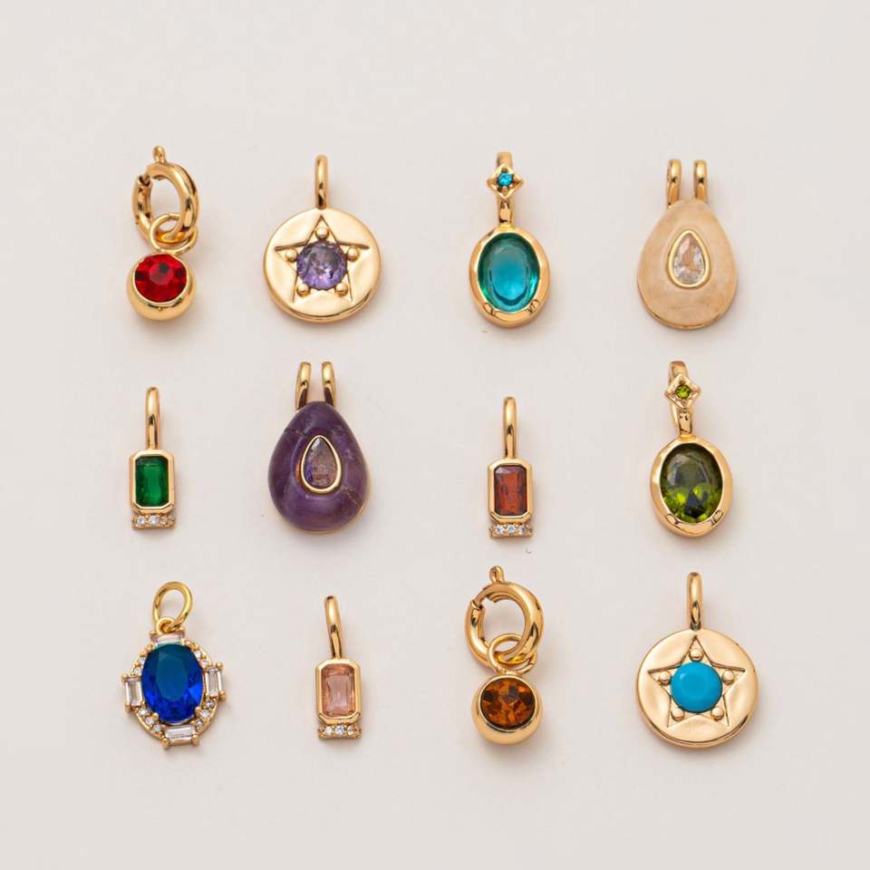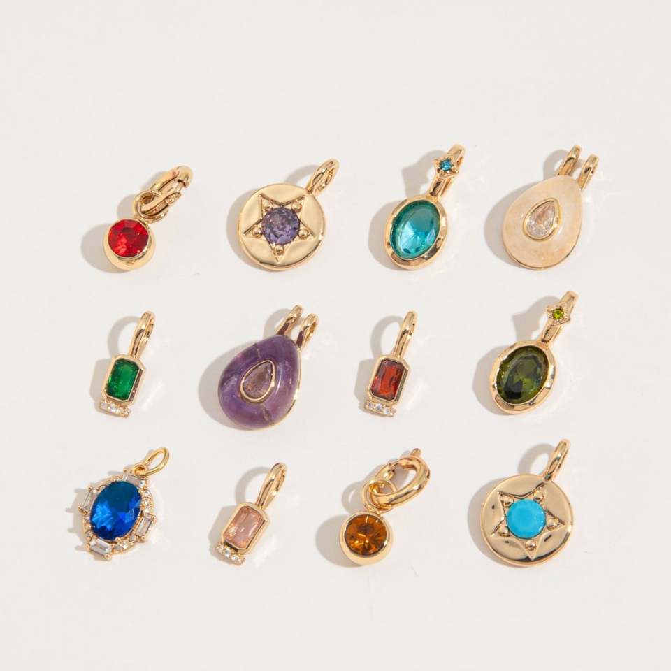 Collar con colgante de 12 piedras de nacimiento de acero inoxidable básico para bricolaje, con protección de color oro de 18K mediante galvanoplastia al vacío en horno de stock