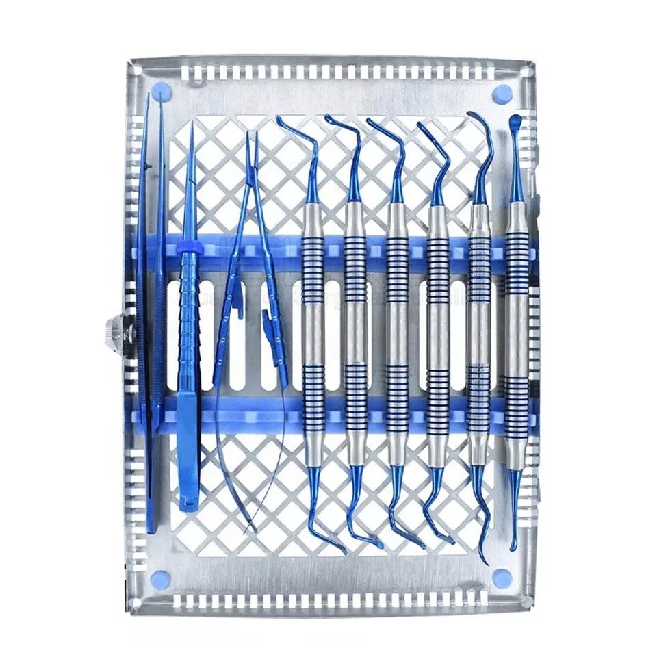 Kit básico de microcirugía oral Juego de cirugía periodontal Kit de Instrumentos dentales azul titanio BY VIDIFIVE INTERNATIONAL