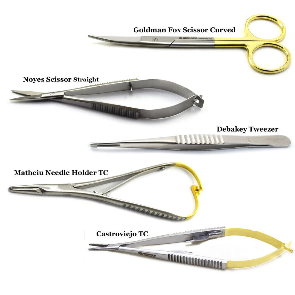 Kit Básico de Microcirugía, Pinzas Portaagujas Quirúrgicas Castroviejo, Tijeras Dentales
