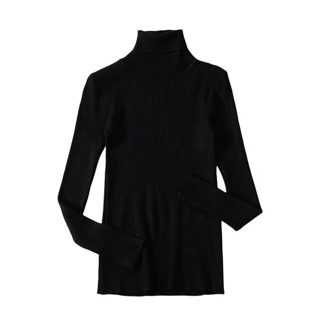 Jersey básico de cuello simulado acanalado para mujer, suéter bonito y Sexy a la moda para otoño e invierno, cálido, ajustado, talla única, negro