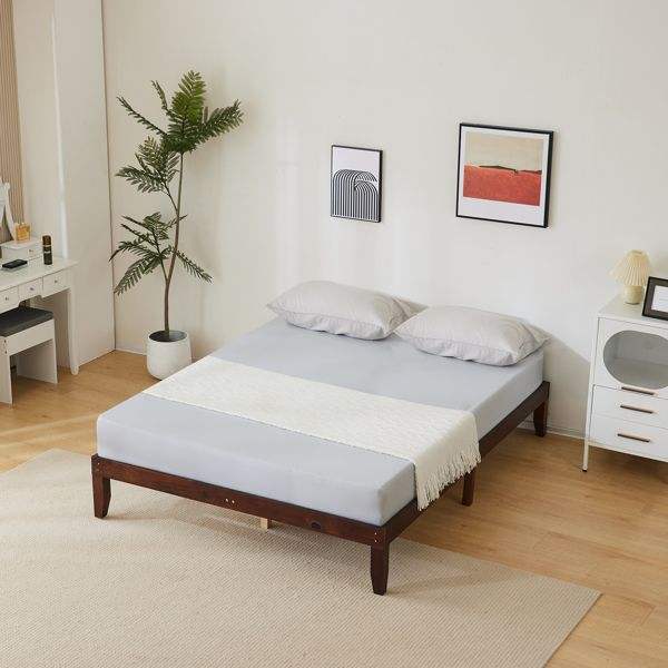 Base de Cama Individual Básica de 189*136*30.5cm, Madera de Pino Pintada en Color Marrón, Camas de Madera