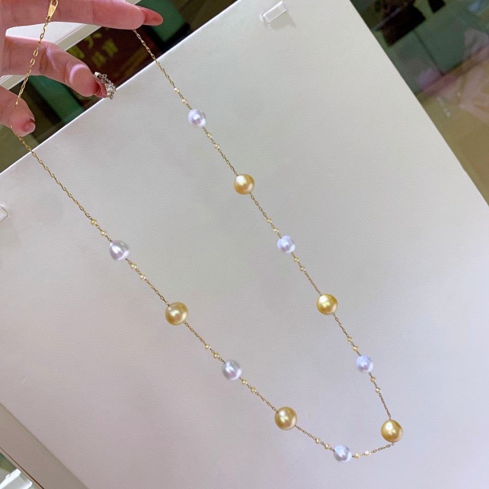 Collar de Perlas de Agua Dulce de 12-13 mm con Cadena de Diamantes y Cierre de Plata Pura, Cadenas Finas Básicas de 12-13 mm