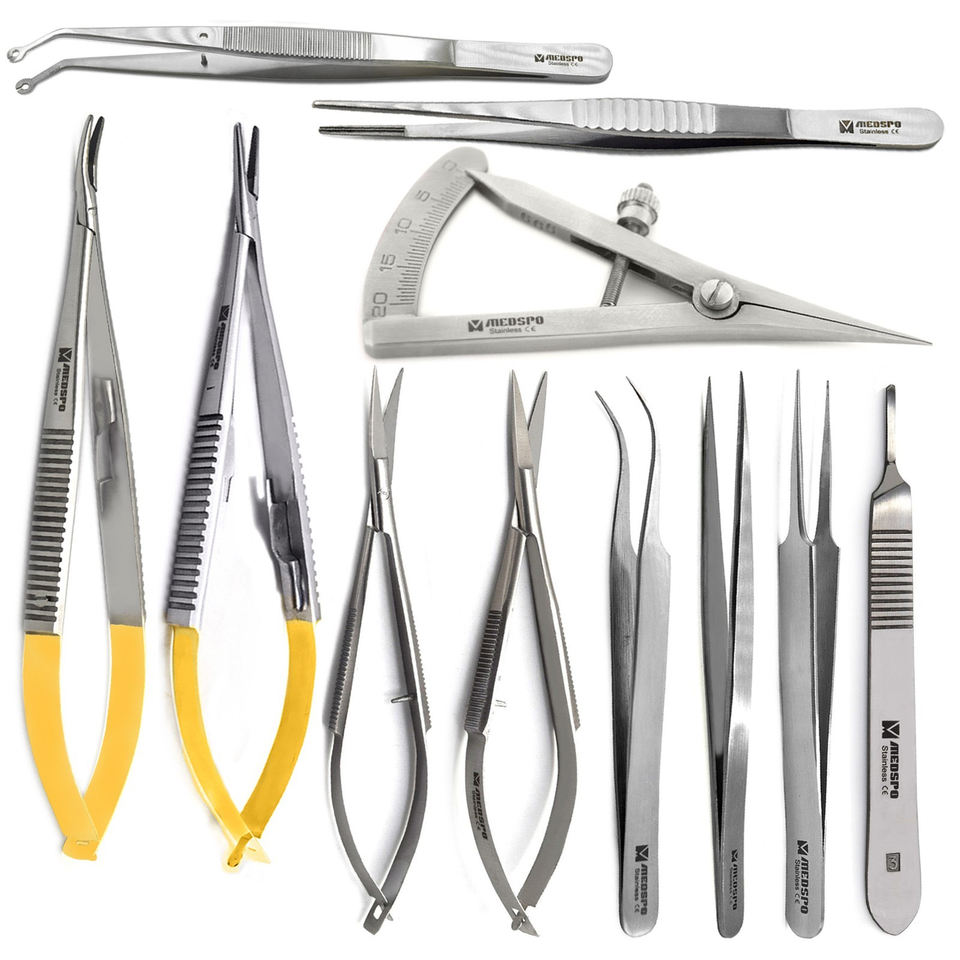 Kit Básico de Instrumentos de Microcirugía de Acero Inoxidable con Pinzas Portaagujas Castroviejo