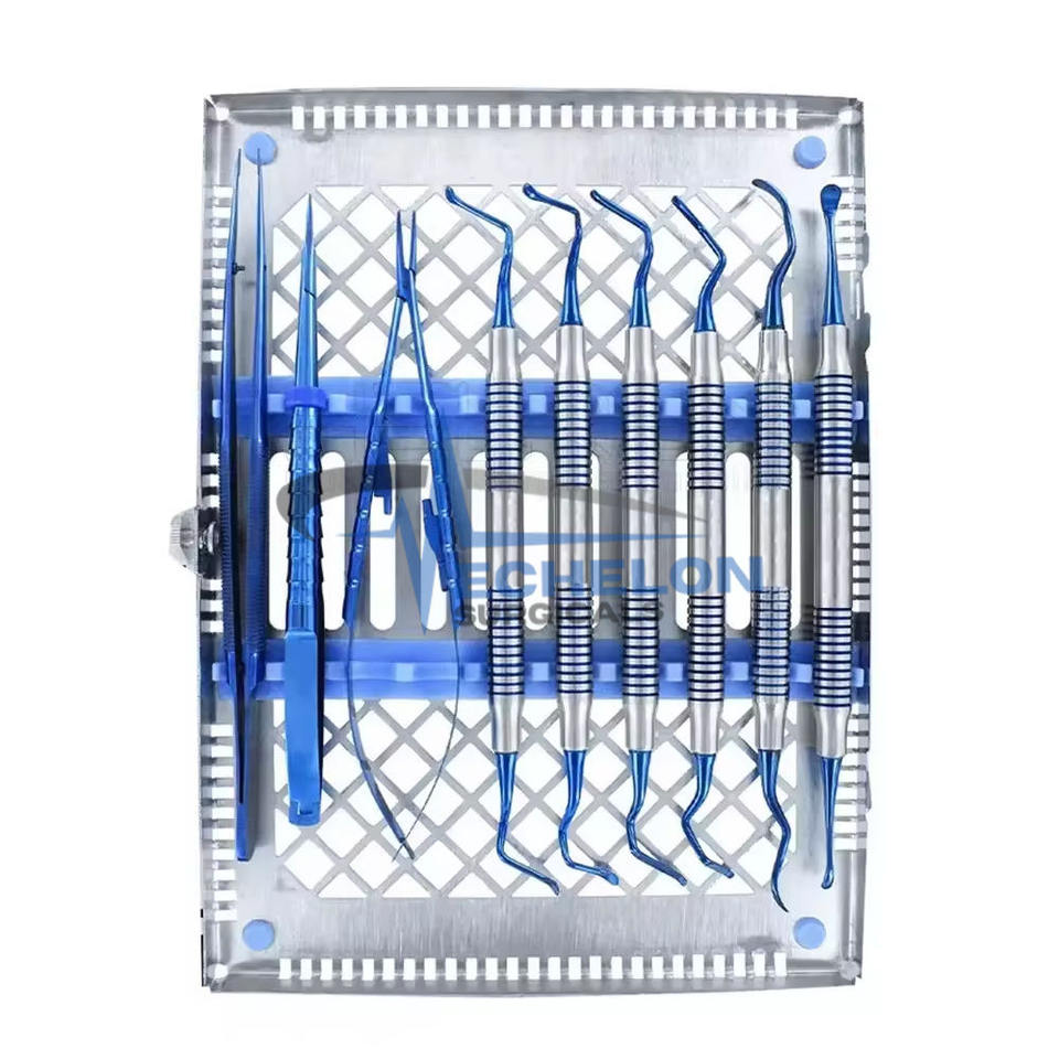 Kit Básico de Microcirugía Oral de Titanio Azul, Taladro Dental y Accesorios, Kit de Cirugía Periodontal con Recubrimiento de Plasma Azul