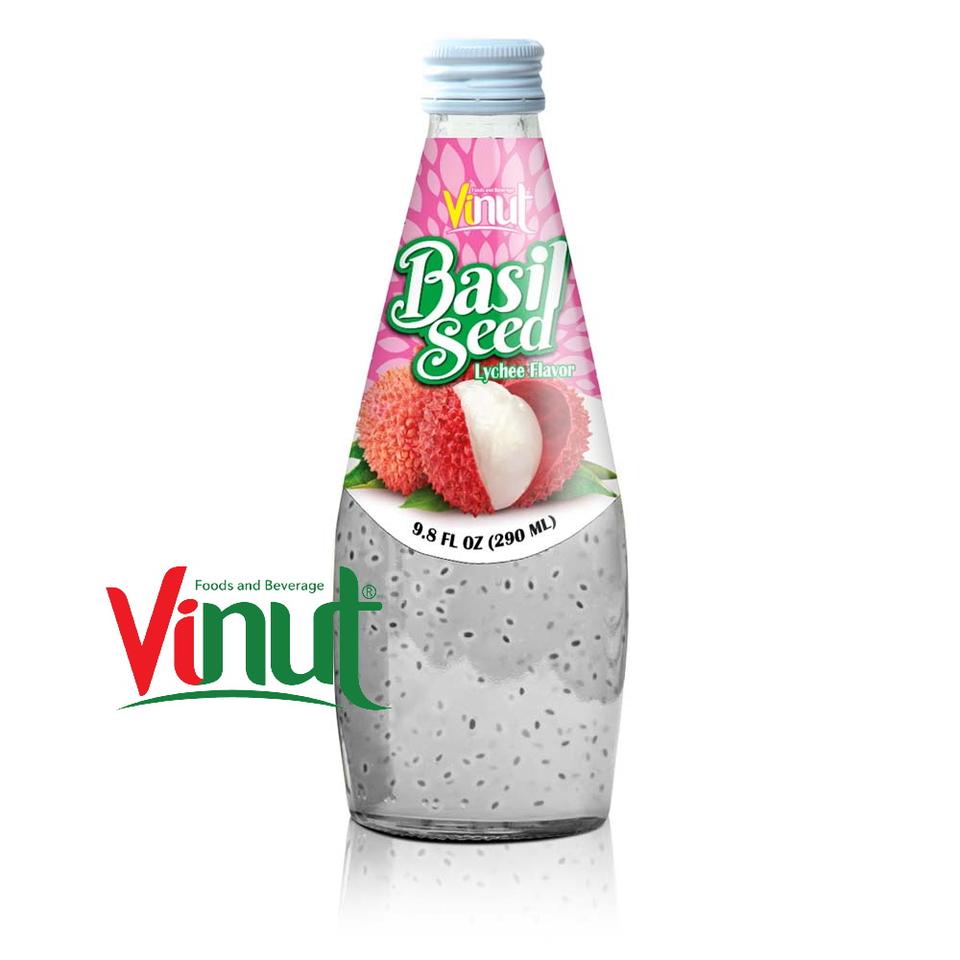 Semilla de albahaca Lychee Drink 290ml Botella de vidrio Baja en grasa Certificación OEM ISO