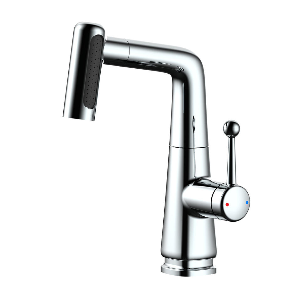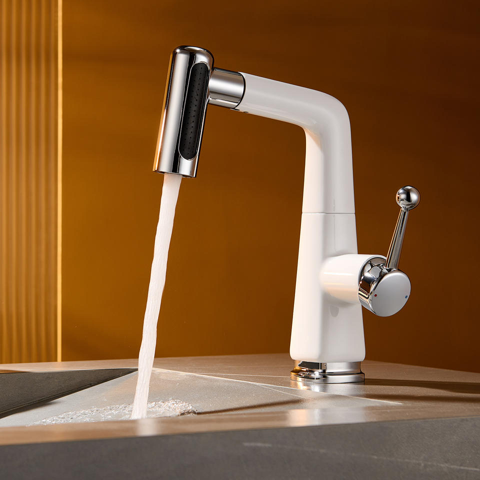 Grifo de lavabo monomando con válvula cerámica, rociador extraíble, montaje en cubierta, un solo orificio