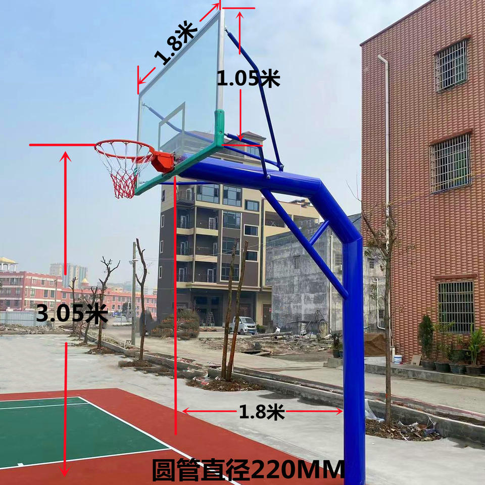 Aro de Baloncesto Estándar para Exteriores, Fijo en el Suelo, Tubo Redondo de 220 mm, Tablero de Vidrio Templado, Equipo para Cancha