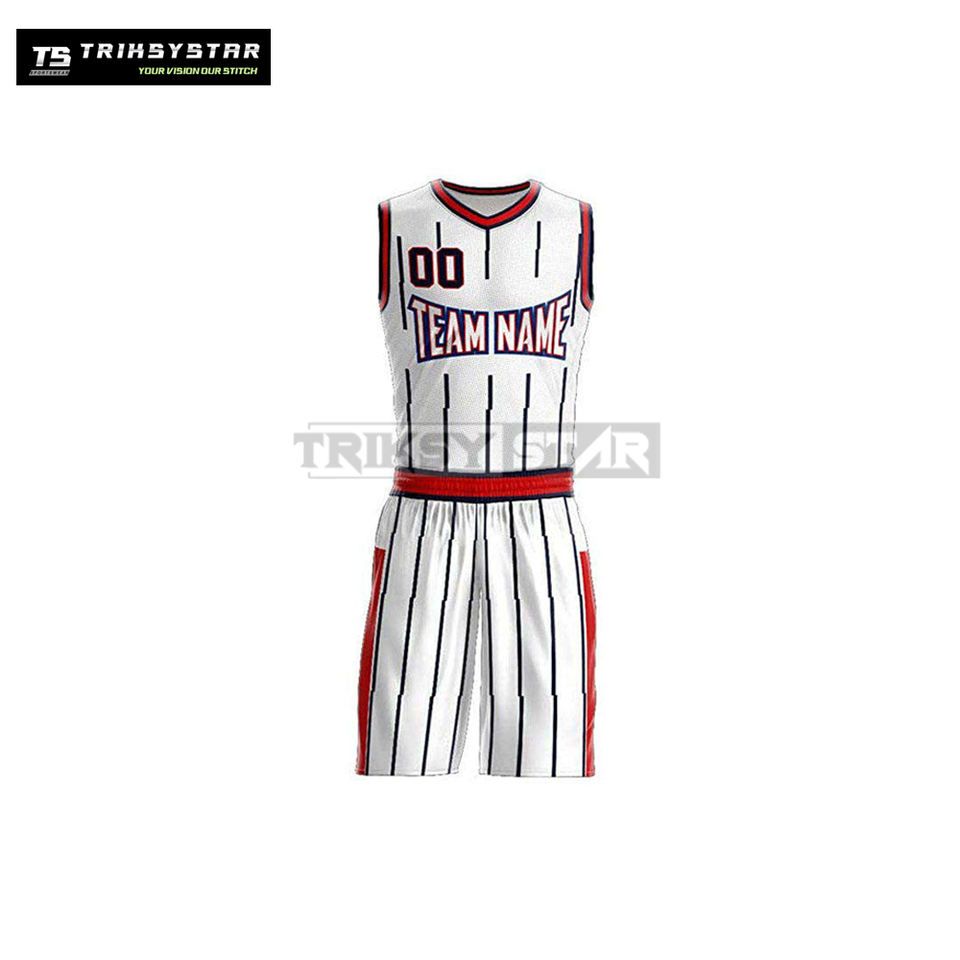 Uniforme de baloncesto de diseño personalizado por TRIKSY STAR Premium blanco rojo rayas equipo Jersey y pantalones cortos conjunto para hombres y mujeres