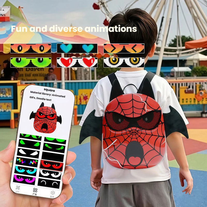 Mochila LED de Dibujos Animados de Spiderman con Mini Pantalla LED, Ojos Brillantes, Material ABS, Correa de Hombro Curva, Impermeable, Unisex, Menos de 20L