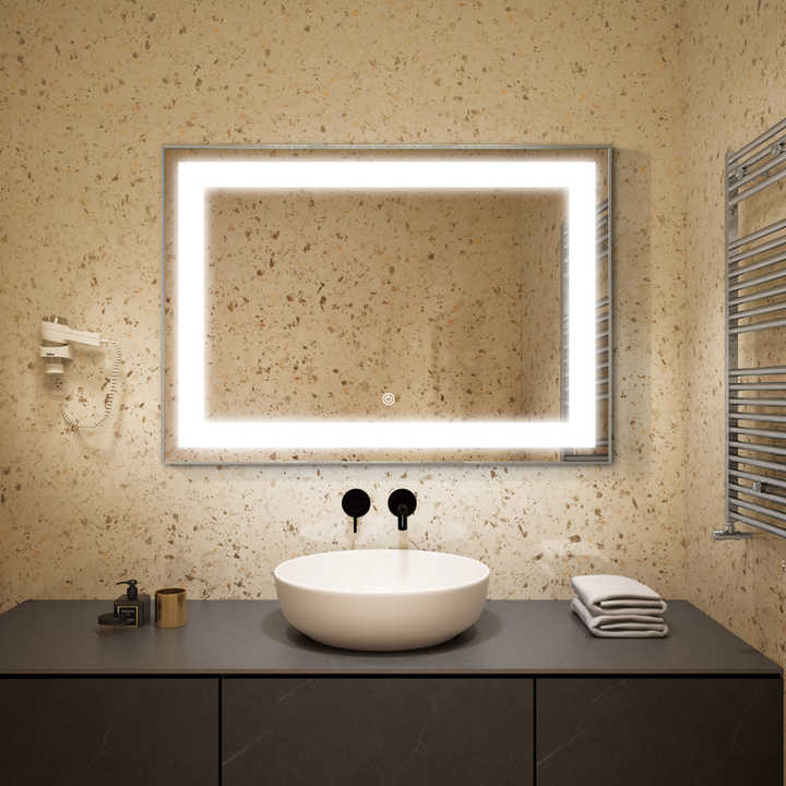 Espejo de tocador de baño LED iluminado moderno rectángulo inteligente con luz ajustable para uso en salón y dormitorio