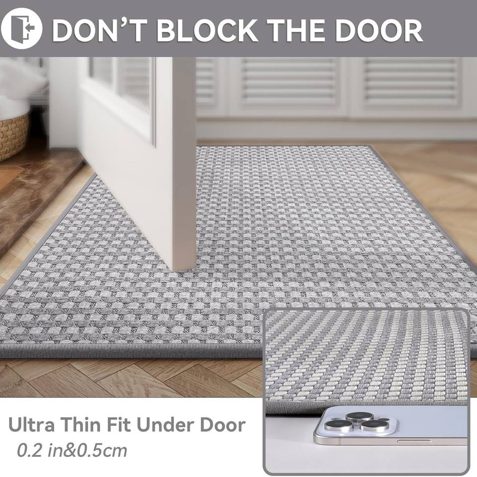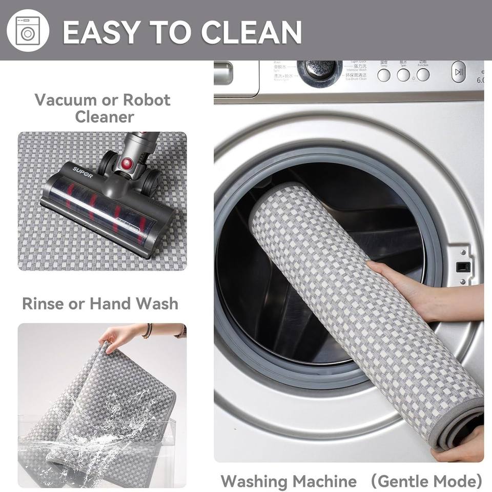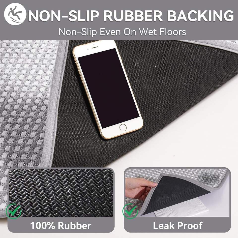 Alfombra de Baño Rectangular de Fibra de Poliéster Absorbente, Diseño Minimalista, Patrón Geométrico Gris