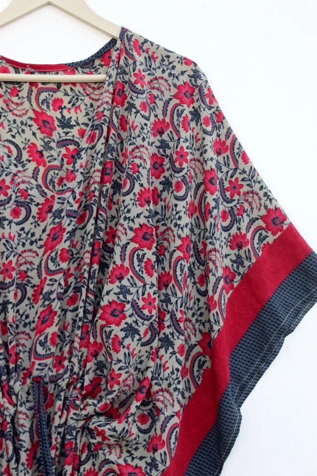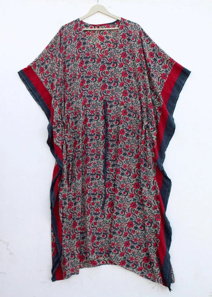 Bata de Baño para Mujer, Verano, Chifón, Bordado a Máquina, Floral, Larga