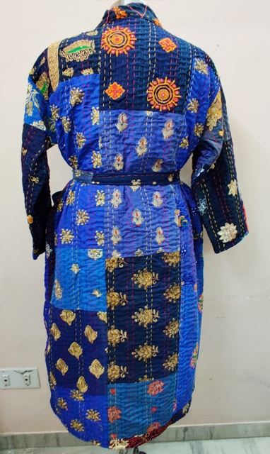 Bata de baño 100% algodón indio Patchwork hecho a mano Kantha Stitch bata de algodón Kimono bata de baño ropa de noche tamaño libre