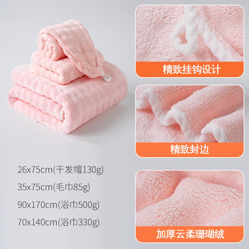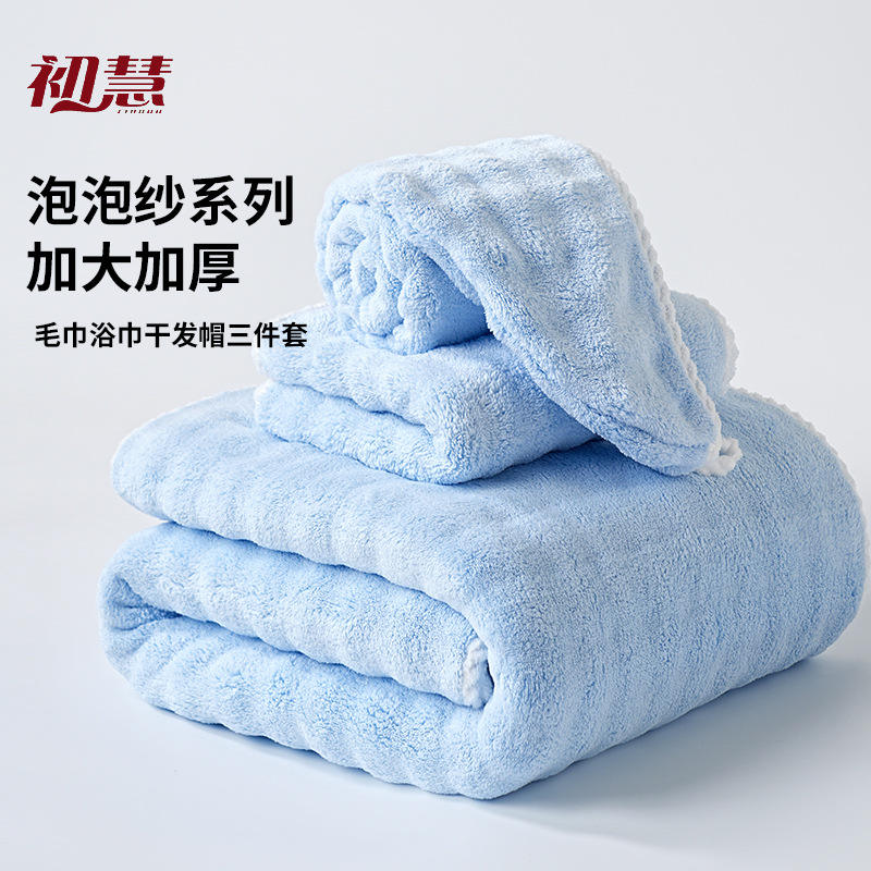 Toalla, gorro para secar el cabello, toalla de baño [70*140cm] juego de 3 piezas