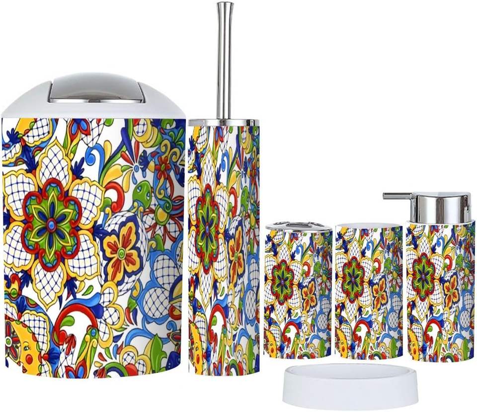 Juego de accesorios de baño, 6 piezas, objetos decorativos tradicionales mexicanos, Talavera para encimera, decoración Bohemia