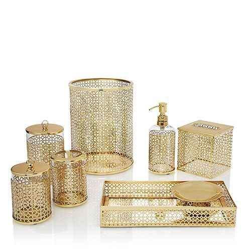 Juego decorativo de baño moderno Color dorado Acero inoxidable pulido brillante Juego de 6 piezas Suministro de baño y lavado a mano