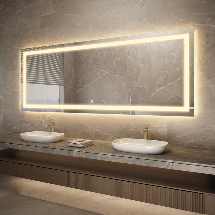 Palabra clave:Estructura de acero recubierta de polvo Espejo de baño con luz LED