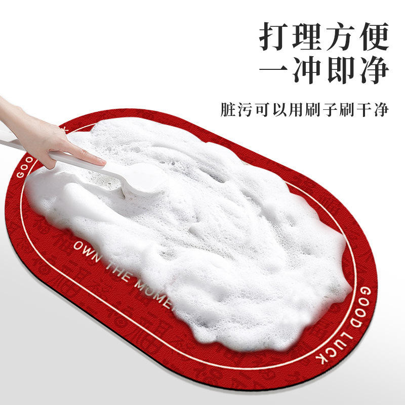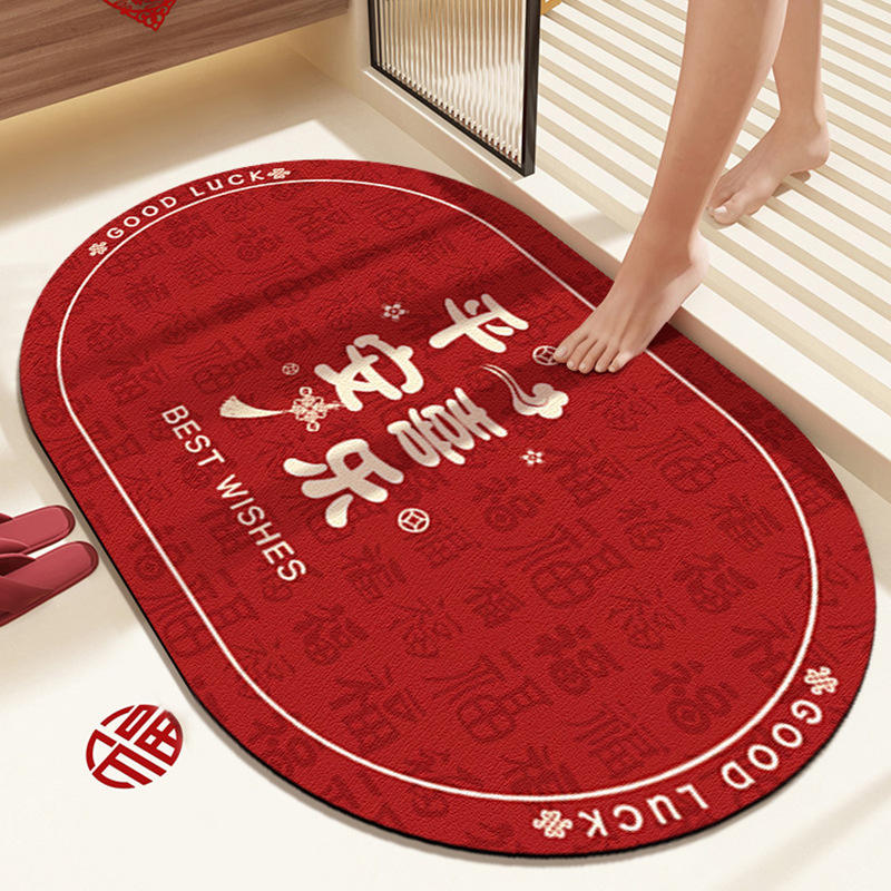 Alfombra de baño ovalada de fibra de poliéster roja, absorbente, antideslizante, de secado rápido, para baño y decoración de Año Nuevo