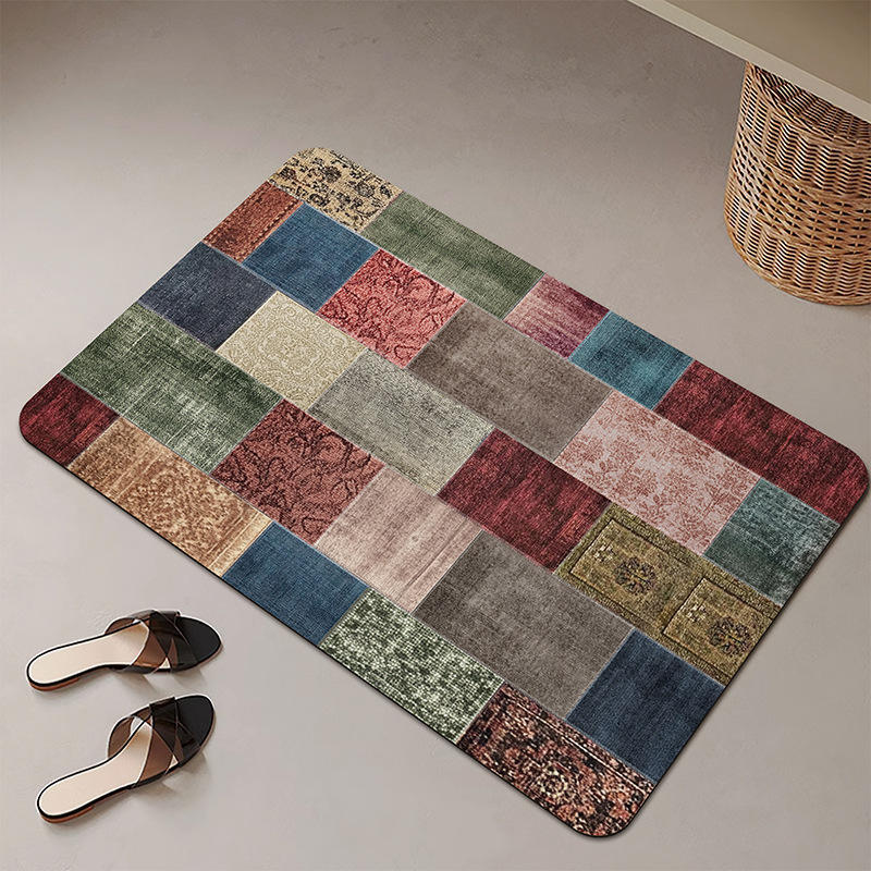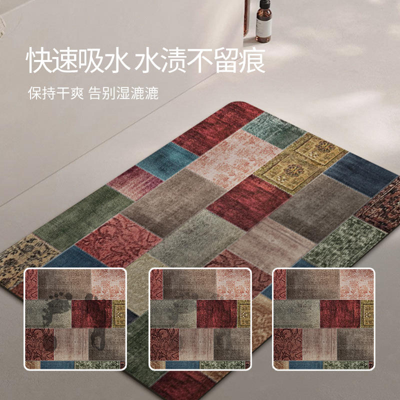 Alfombra de baño rectangular de fibra de poliéster con estampado vintage, absorbente y antideslizante para baños.