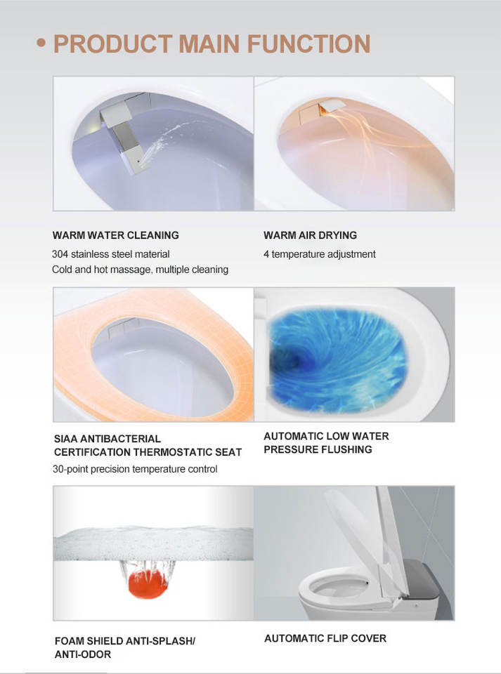 Baño multifunción control remoto japonés autolimpieza automático inodoro inteligente de una pieza