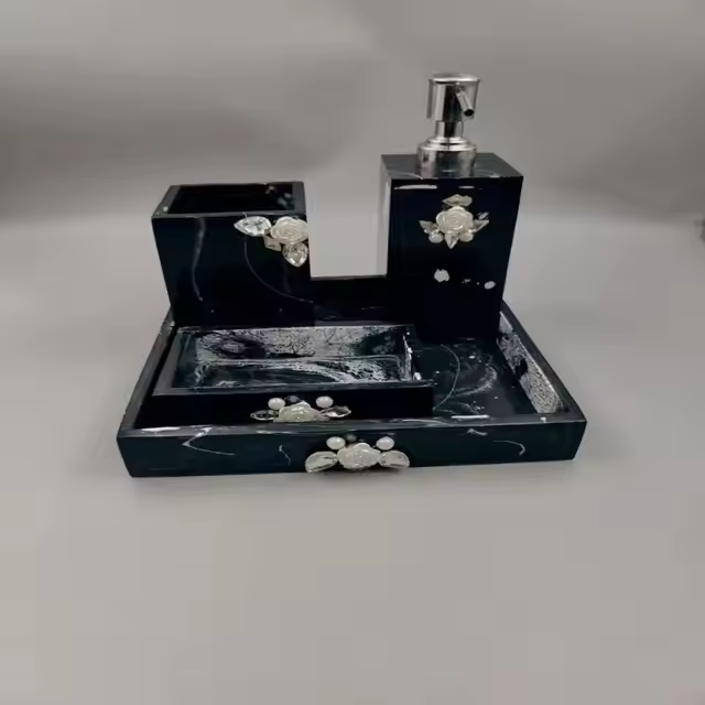 Juego de baño Bandeja de diseño de lujo Jabón Champú Cepillo Titular Personalizado por Crescent Crafts