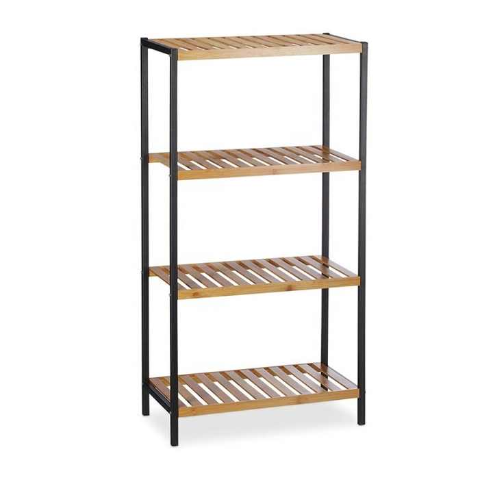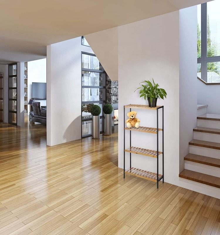 Estantes de baño, estante de inodoro, soporte de madera de bambú para plantas, 4 estantes, organizador de marco de Metal, exhibición de flores para plantas de casa