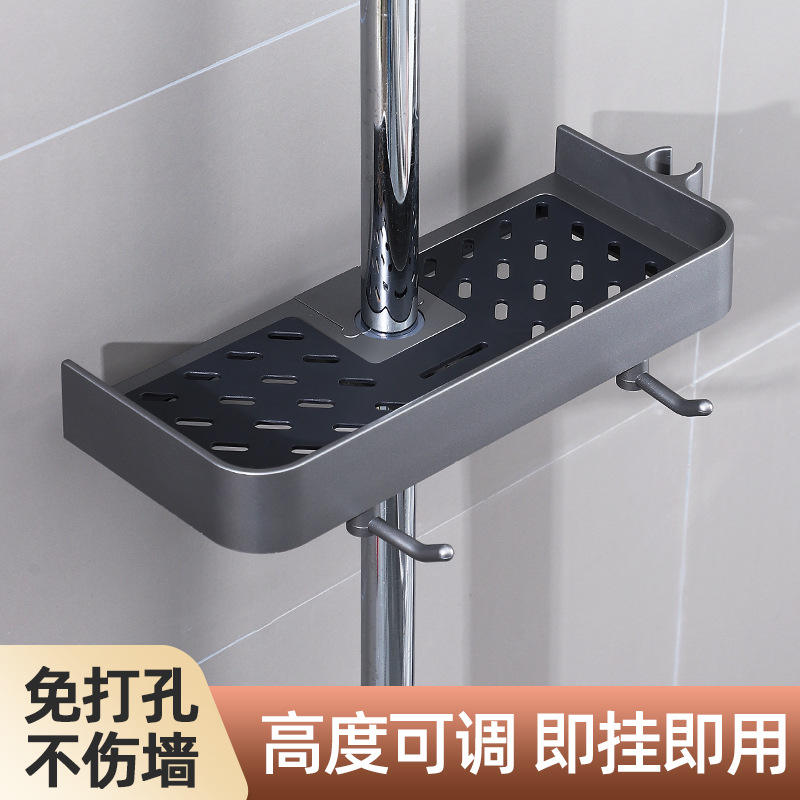 Estante de Almacenamiento para Cabezal de Ducha de Baño, 50 cm, Montado en Pared, Estante Esquinero, Bandeja Rectangular Duradera con Colgador