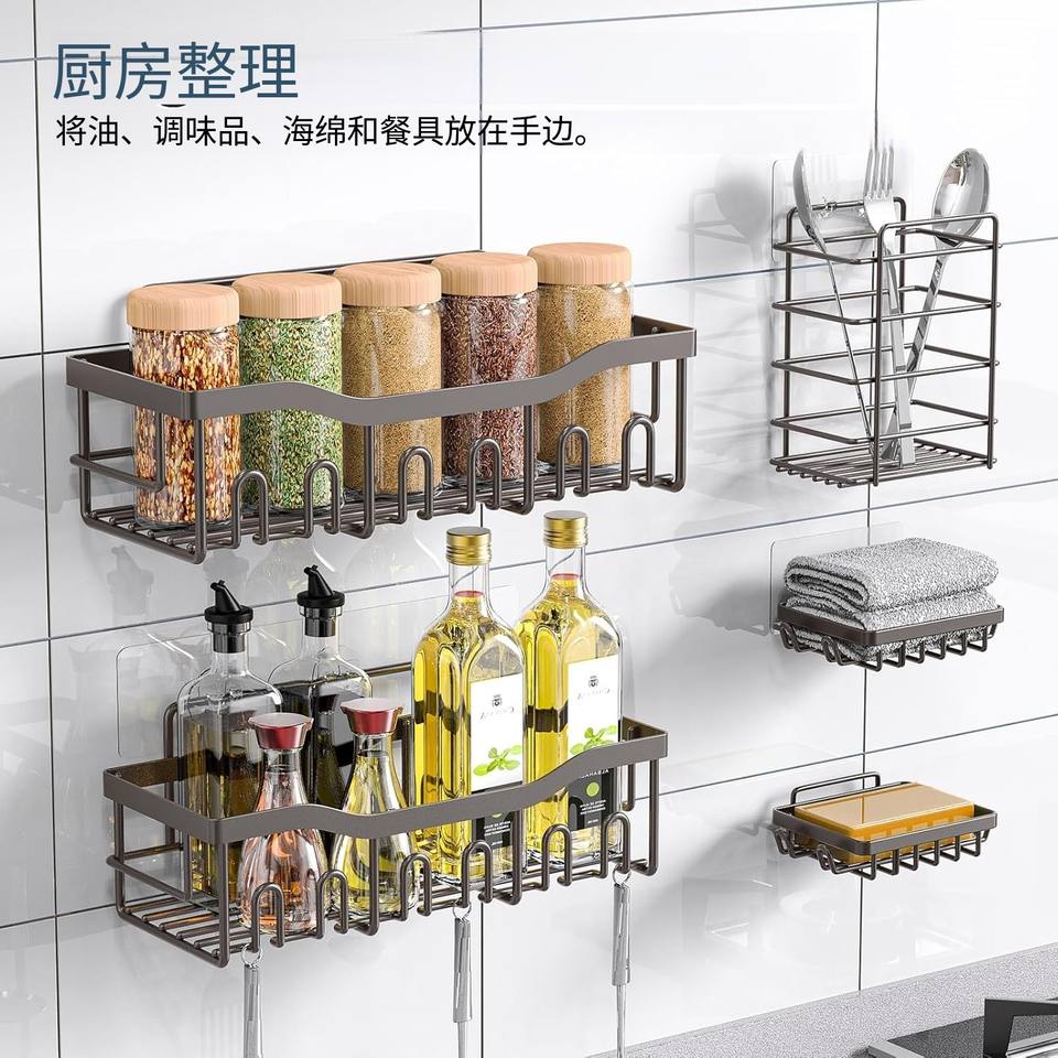 Estante de Almacenamiento para Baño, Estante de Esquina Montado en la Pared, Rectangular y Duradero, Sin Necesidad de Perforación, Organizador de Artículos de Aseo