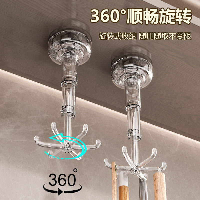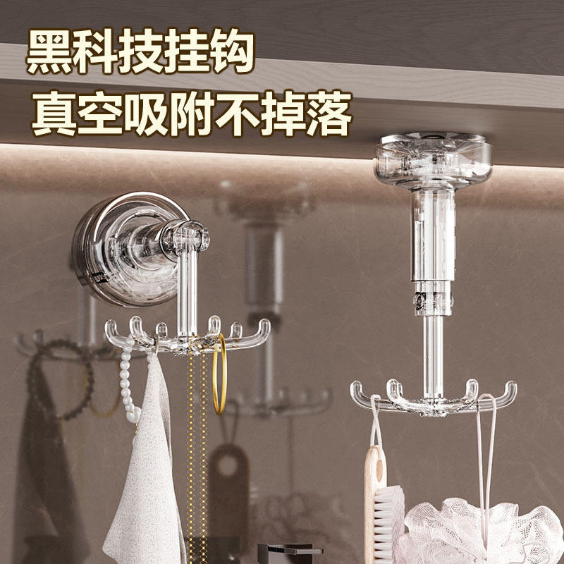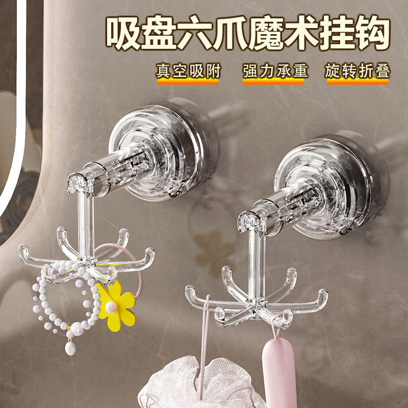 Bathroom Suction Cup Hook Rack Six Claw Rotating Transparent Gray Silver Easy Installation Wall Mounted Jewelry Hair Tie Storage