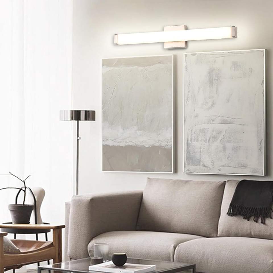 Luz de tocador de baño, LED cuadrado de níquel cepillado, 24 pulgadas, 16W, 4000K, luz blanca Natural, barra de pared, accesorios de iluminación sobre espejo