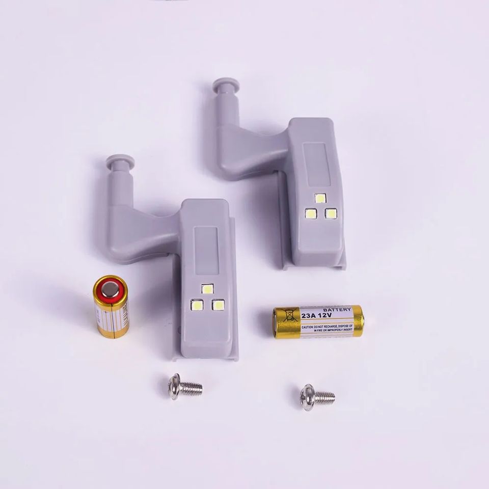 Bisagra LED con pilas para puerta de armario, muebles, empuje para abrir, cocina regulable con pilas, luz Led con bisagra para debajo del armario