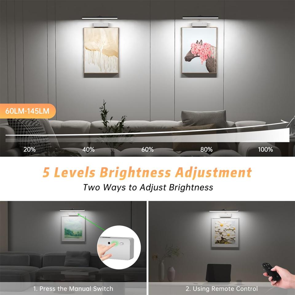 Lámpara de Pared para Cuadros con Funcionamiento a Batería, Iluminación Inalámbrica para Arte con Control Remoto y Temporizador, Lámpara de Galería Regulable para Pinturas