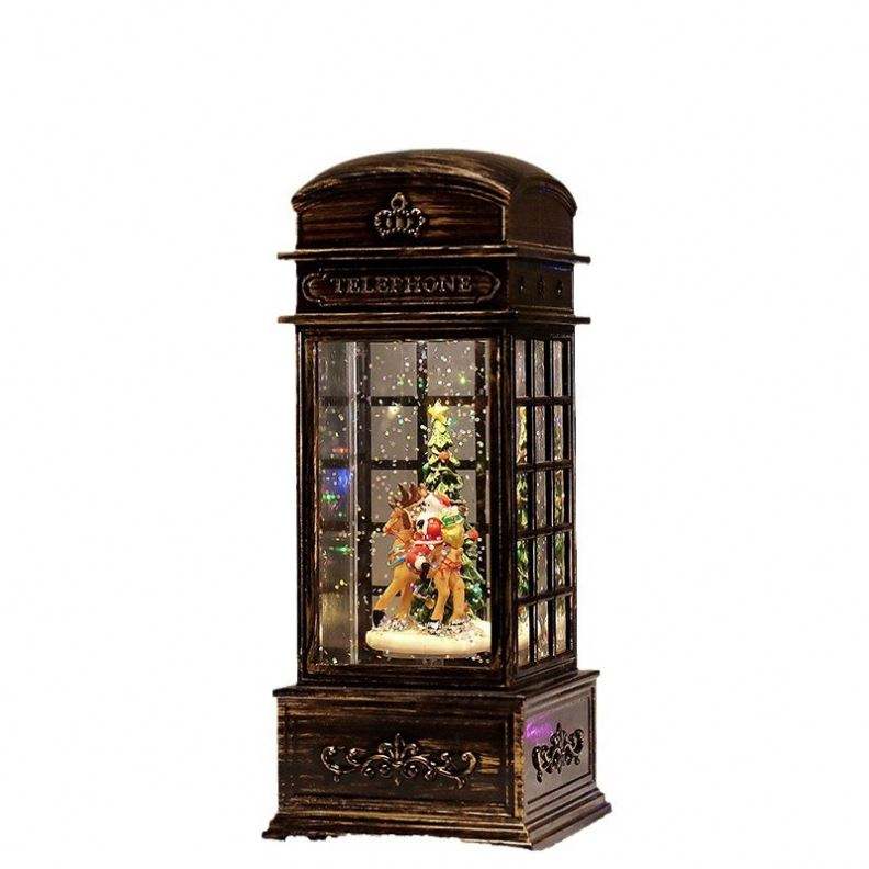 Caja de Música con Luz Nocturna LED, Funciona con Pilas, de Plástico, Llena de Agua, con Efecto de Nieve Musical, Diseño de Cabina Telefónica Navideña