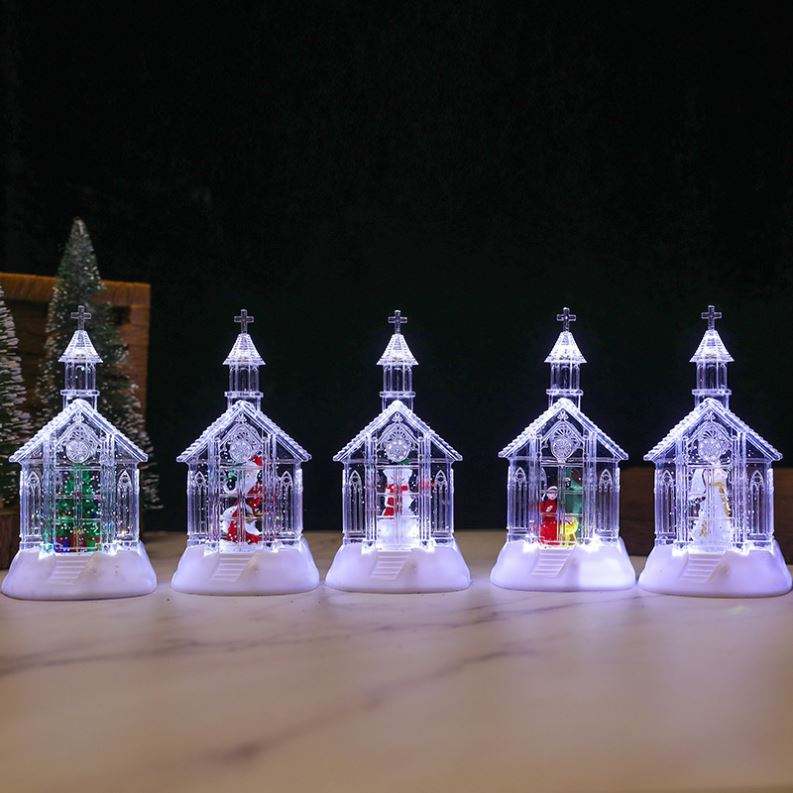 Lámpara de Viento Pequeña de Plástico con Luces LED a Pilas, Adornos de Escritorio con Forma de Iglesia, Papá Noel, Muñeco de Nieve y Ángel, Regalos de Iluminación Navideña