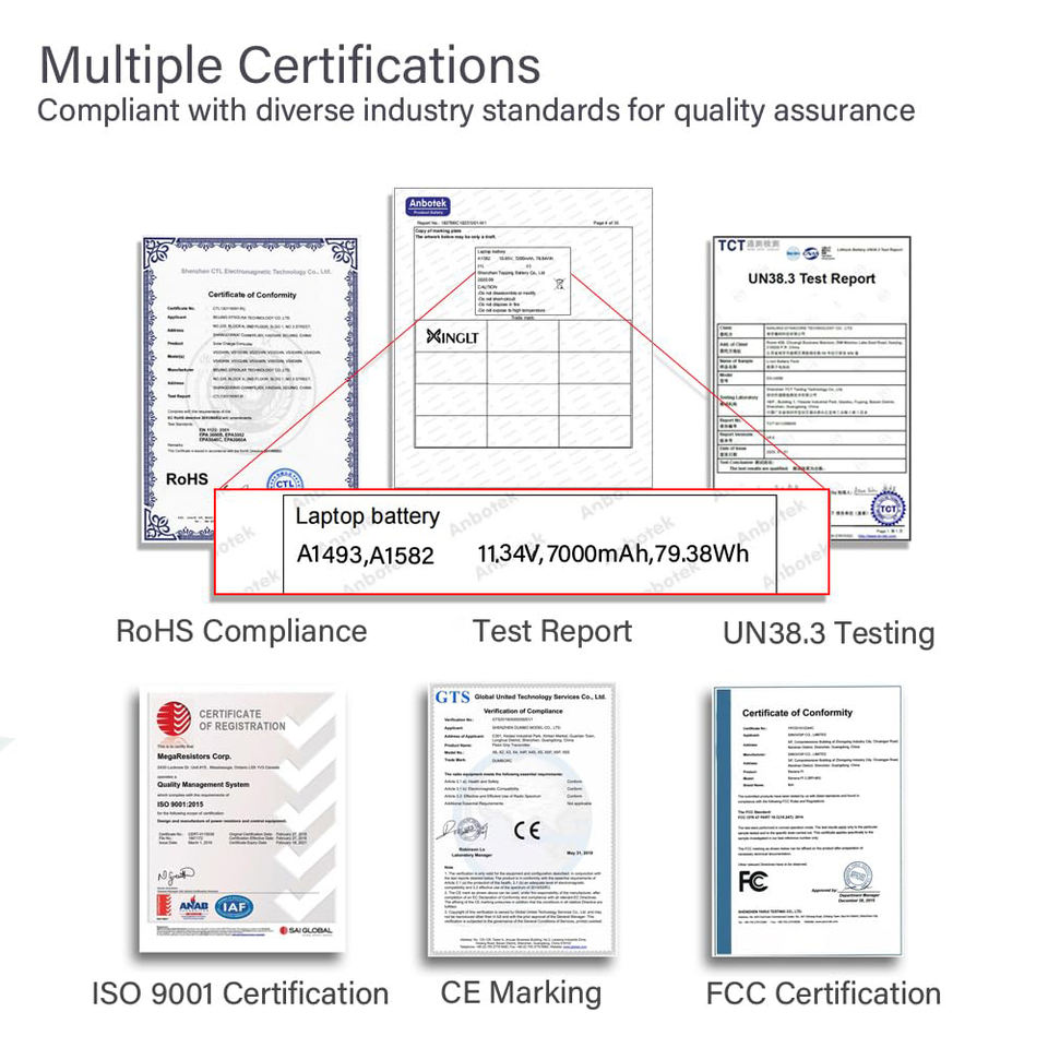 Certificado:CE/RoHS/Ficha de datos/UN38.3/FCC