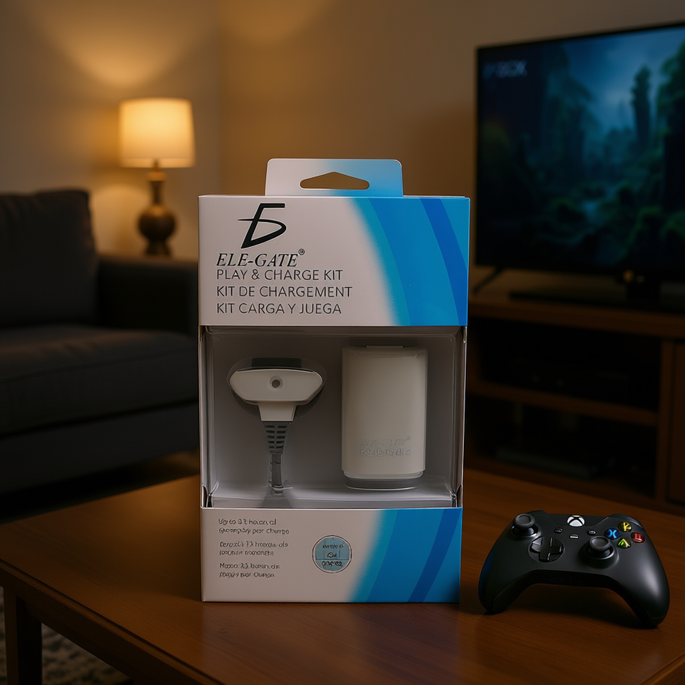 Kit de Juego y Carga Elegate para Control de Xbox 360 con Paquete de Baterías Recargables, Modelo CH.GM.05, Hecho en México