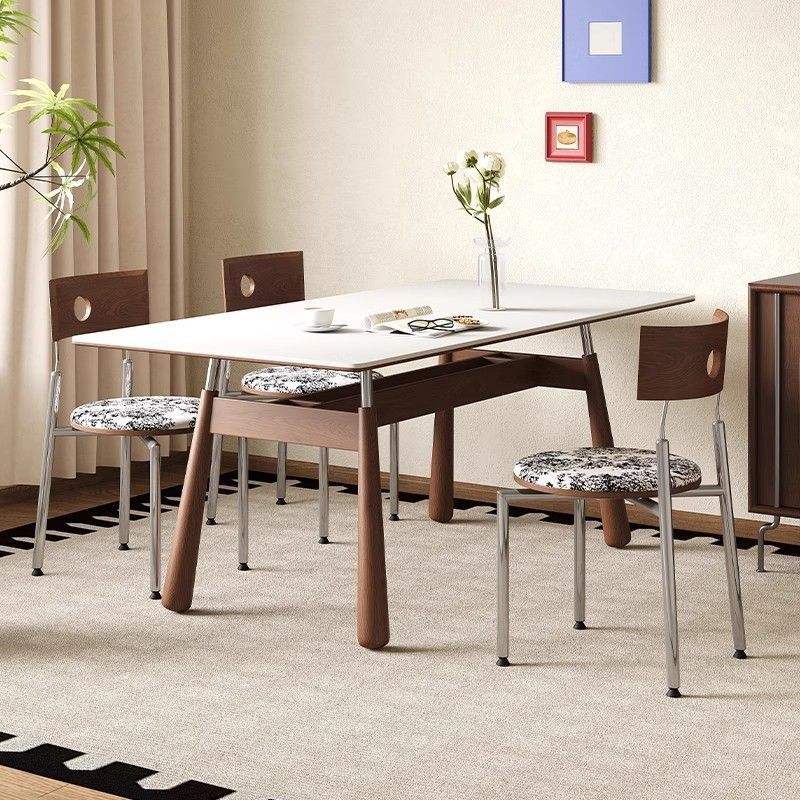 Bauhaus Style Walnut Rectangular Solid Wood Dining Table With Storage For Home Use