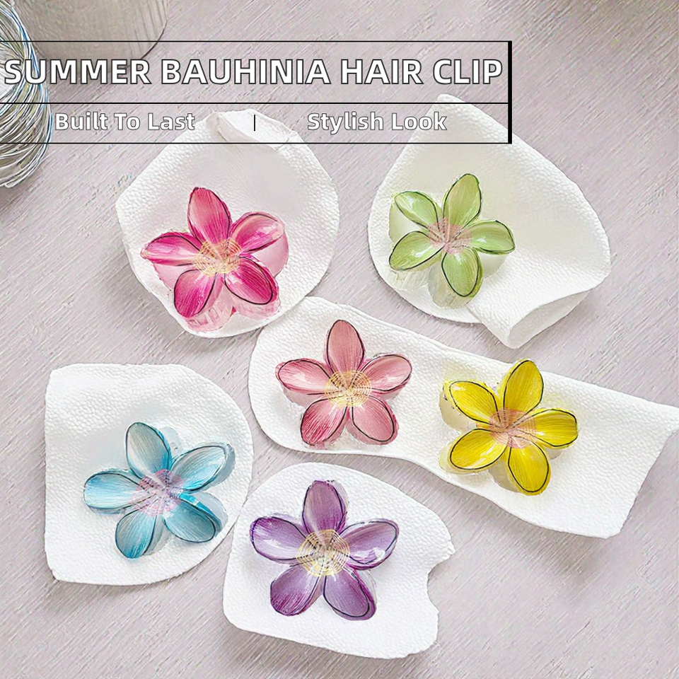 Pinza de Pelo de Alta Gama Estilo Verano Bauhinia, Pinza de Pelo Simple y Moderna de 8 cm, Pinza de Pelo Bonita para Cabello Grueso con Respaldo de Plástico para Cola de Caballo