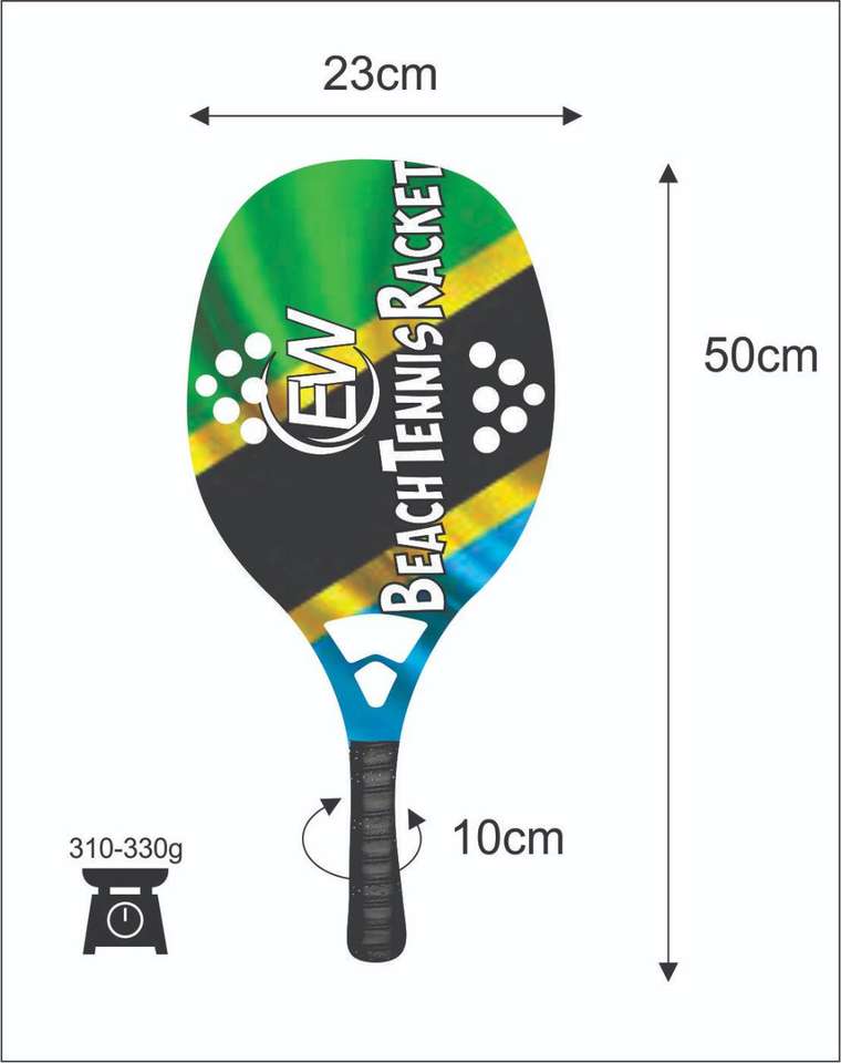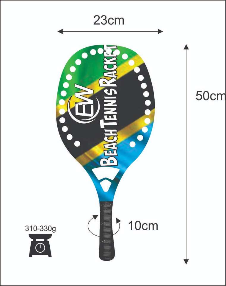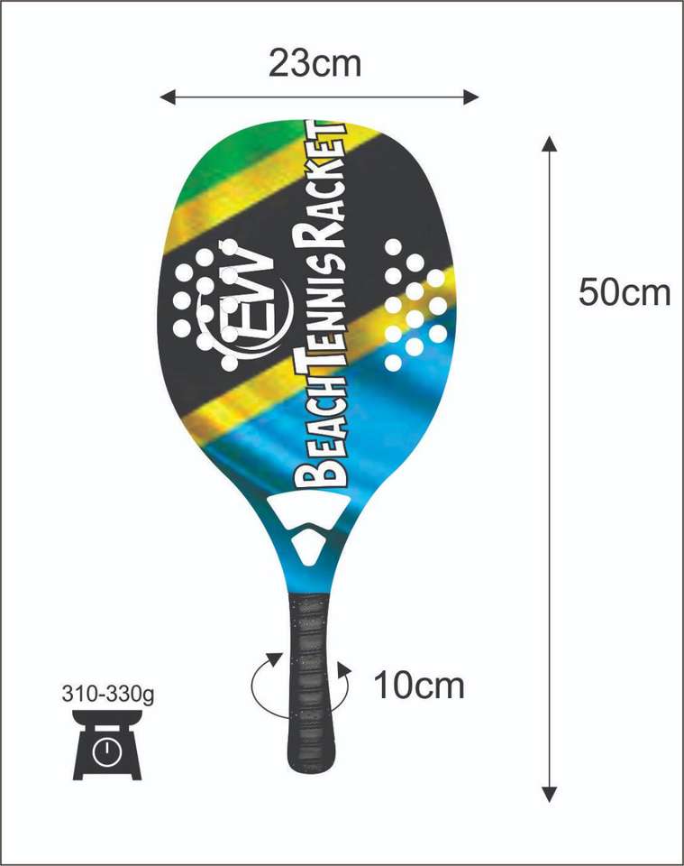 Raquetas de Tenis de Playa Personalizadas, Raqueta de Carbono y Vidrio con sus Logotipos y Combinaciones de Colores, 310-330g, 50cm