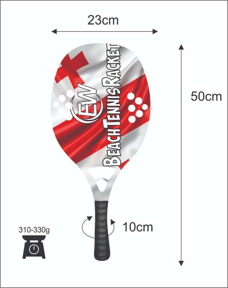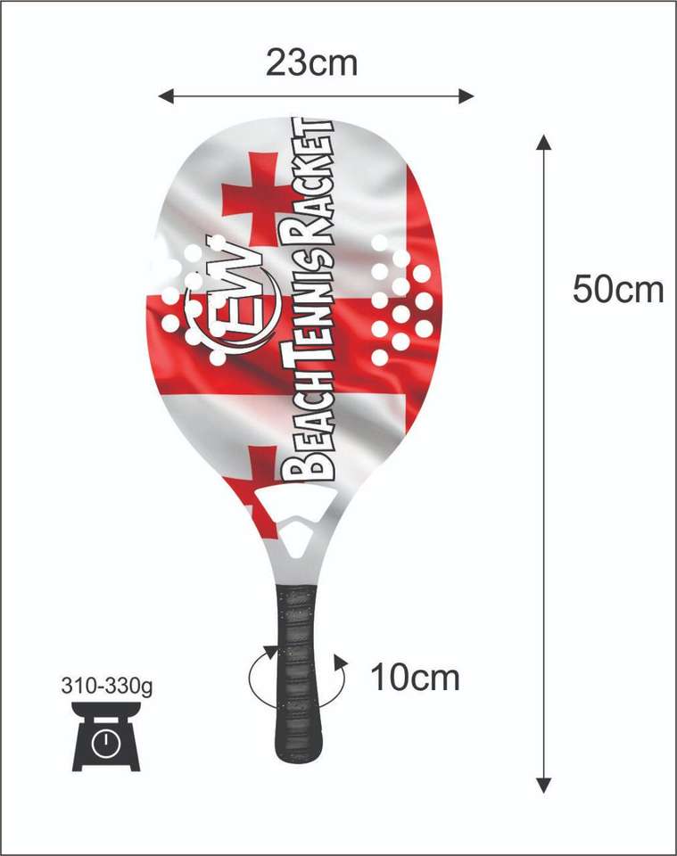 Raquetas de Tenis Playa con Cara de Fibra de Carbono de 20mm, Empuñadura de Fibra de Carbono y Malla de Fibra de Vidrio, Peso 310-330g, Longitud 50cm