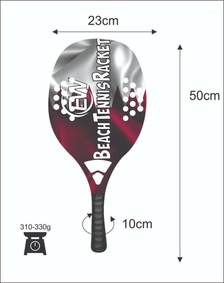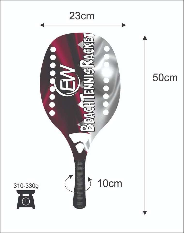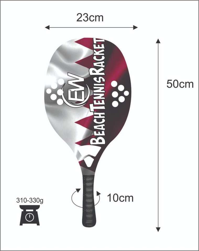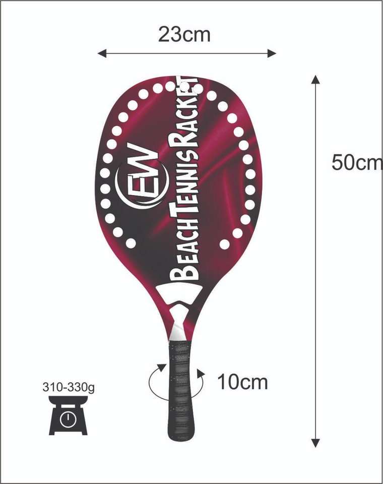 Raquetas de Tenis Playa con Cara de 20 mm, Peso de 310-330 g, Longitud de 50 cm, Empuñadura de Fibra de Carbono, Red de Fibra de Vidrio y Carbono