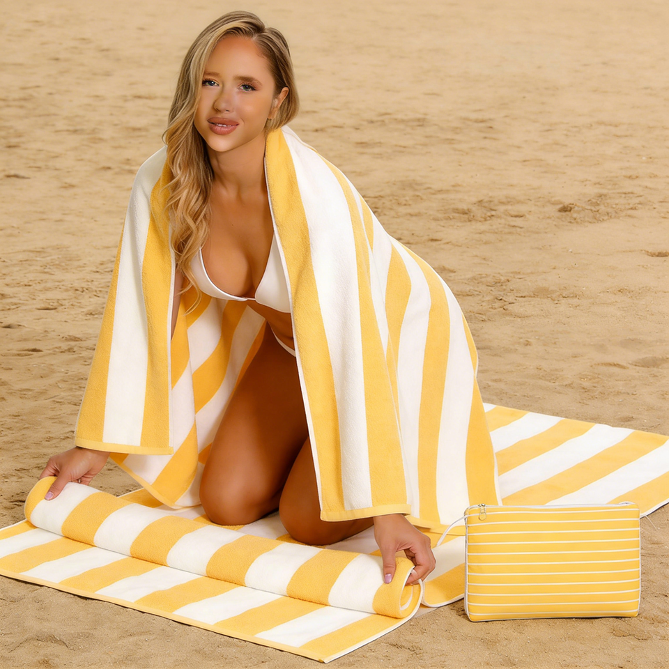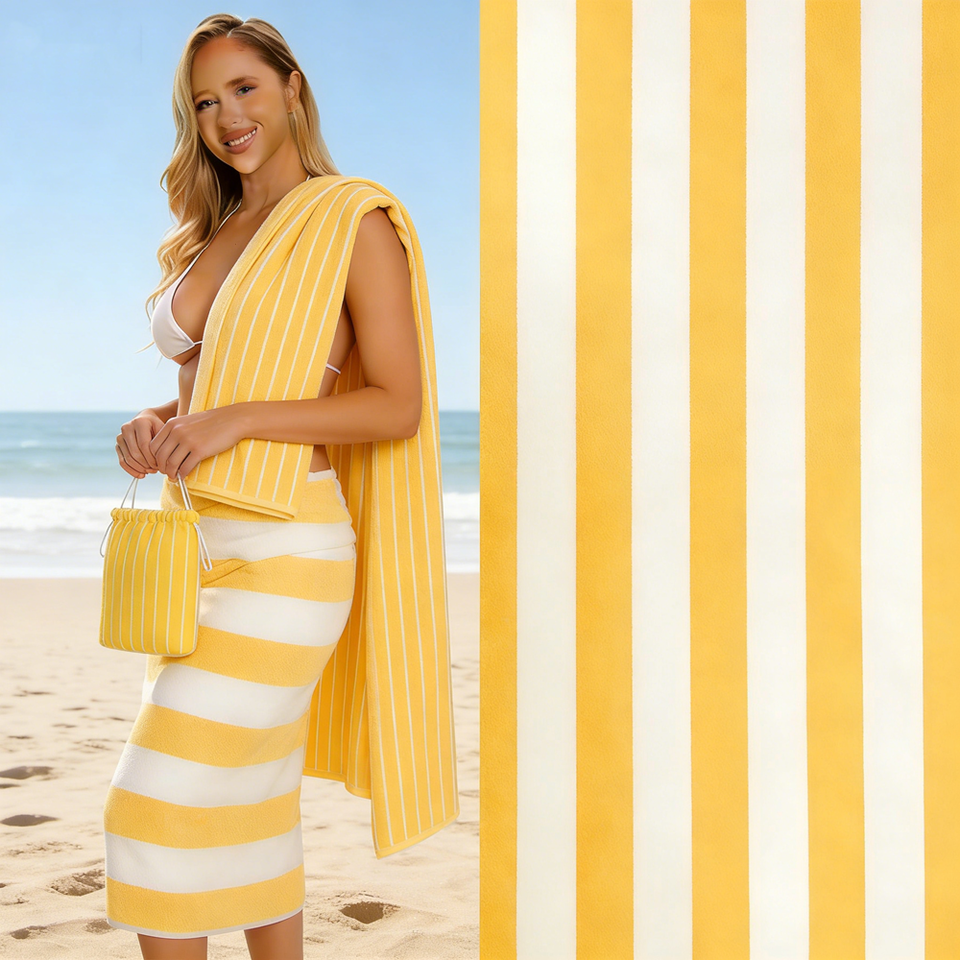 Toallas de Playa Personalizadas de Microfibra XL de Buena Calidad, Lisas, de Plástico Reciclado, Amarillas, con Rayas de Muelle y Bahía
