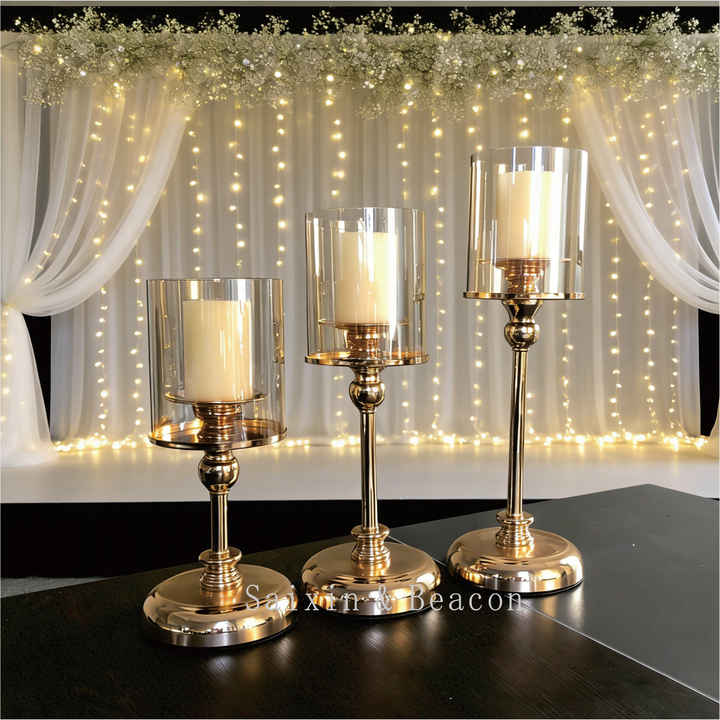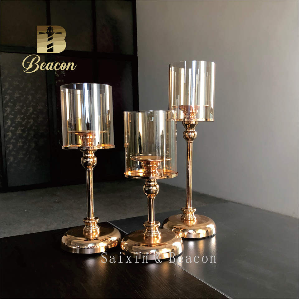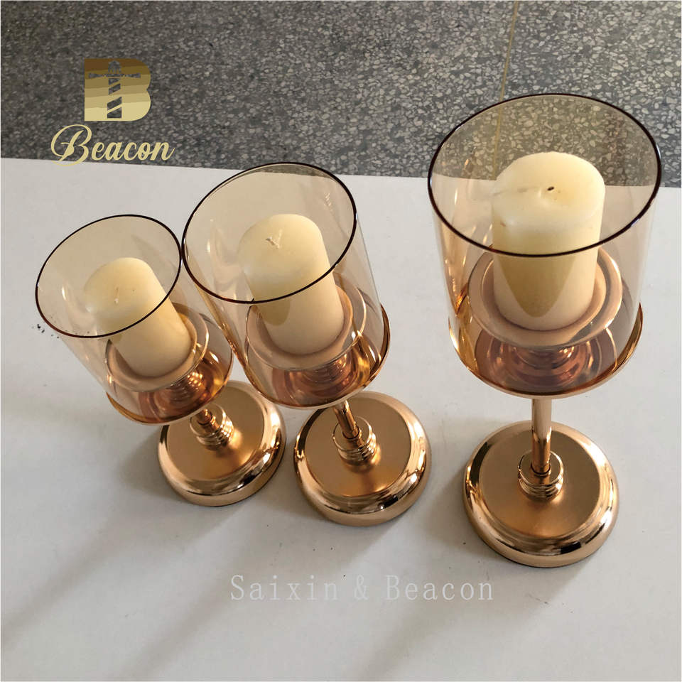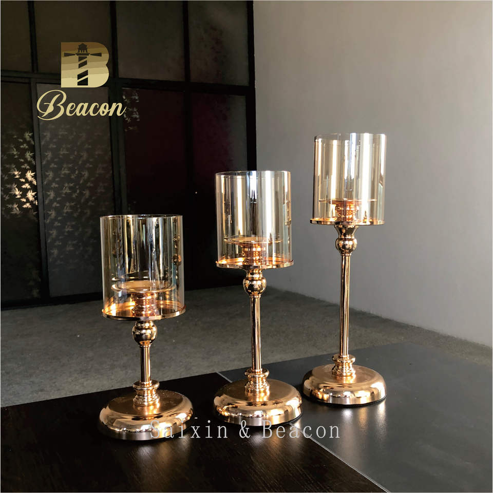 Beacon Juego de 3 Portavelas Dorados Graduados con Campanas de Vidrio Ámbar, Centros de Mesa de Lujo para Bodas