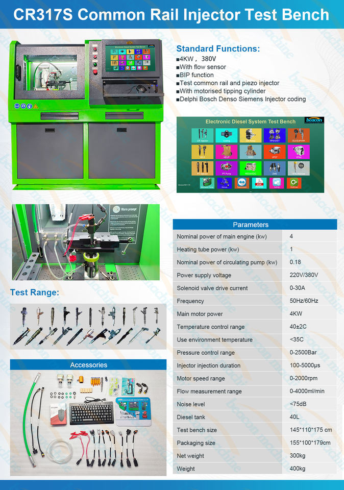 Máquina de Reparación de Inyectores CRDI Beacon CR317S, Servicio de Reparación de Inyectores Common Rail Diésel, Codificación de Inyectores Pezo, Prueba de Inyectores