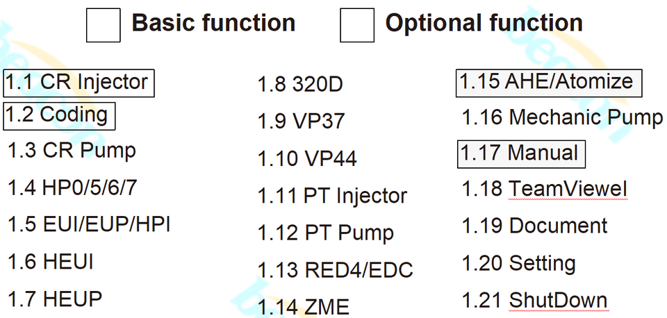 Funciones3:Inyector de combustible de cuatro agujas que prueba la codificación del sistema libre